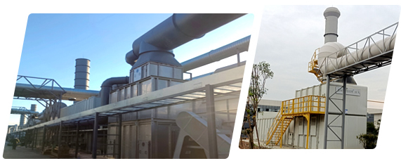 技術(shù)難點:塑膠加溫后廢氣含高沸點物質(zhì),氣體溫度較高;危廢倉庫廢氣成分復(fù)雜,含有鹵素